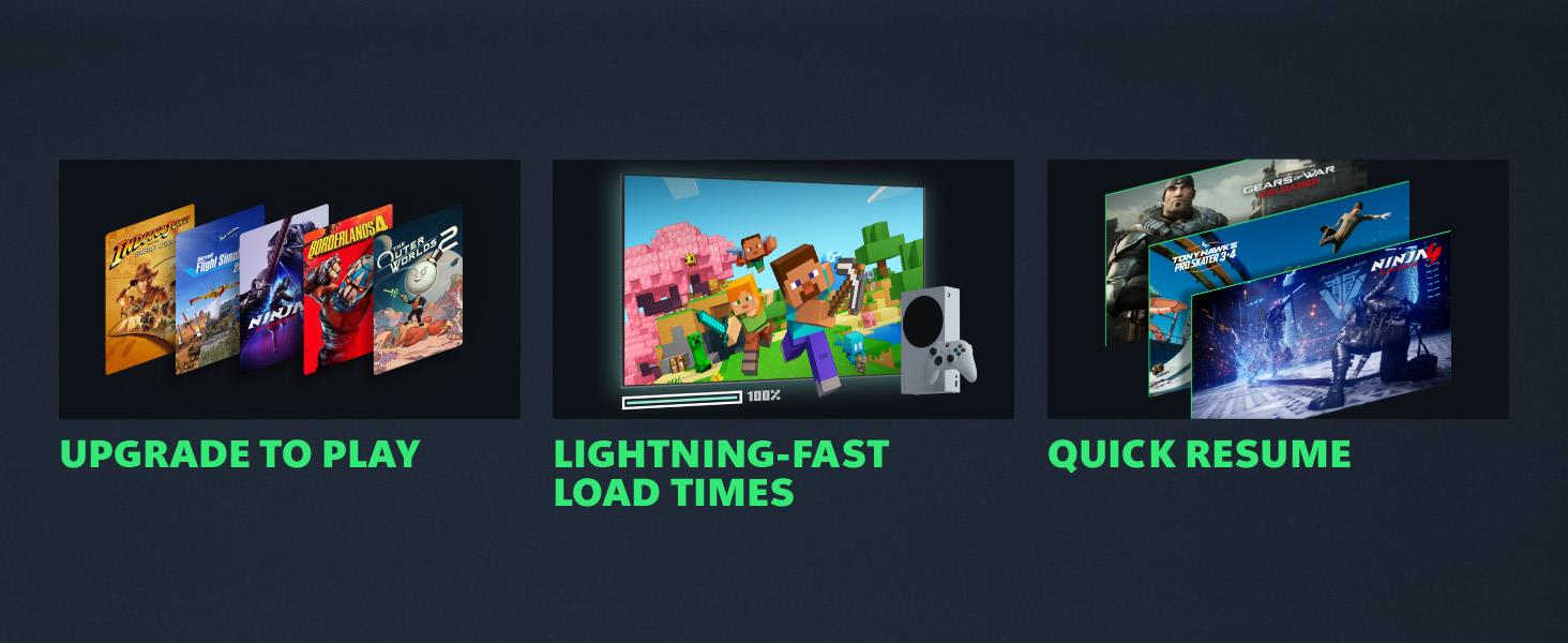 Seamlessly switch between your favorite games and pick up right where you left off with Quick Resume. Play four generations of games with backward compatibility, plus games that are optimized for Xbox Series X|S that look and play better than ever. Jump into your favorite games like Fortnite and Grand Theft Auto instantly with lightning-fast load times.